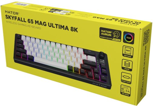 HATOR Skyfall MAG Ultima 8K Wireless — це сучасна бездротова клавіатура преміумкласу, яка поєднує магнітні перемикачі HATOR Aurum Ice та неймовірно високу швидкість реакції. Завдяки підтримці частоти опитування до 8000 Гц як у дротовому, так і в бездротовому режимі (2.4 ГГц), а також технології Rapid Trigger з точністю до 0,01 мм, вона забезпечує миттєве спрацьовування та повторне натискання клавіш. Користувач може індивідуально налаштовувати точку активації для кожної клавіші, що робить цю модель ідеальною для кіберспорту та ігор, де кожна мілісекунда має значення.