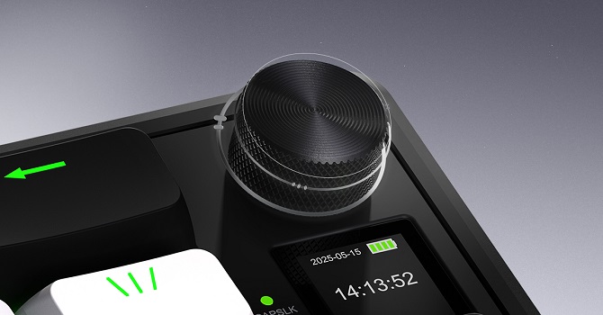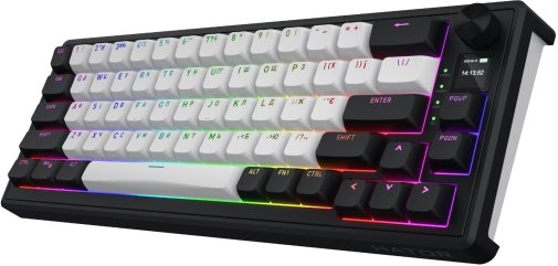 Клавіатура підтримує tri-mode підключення: 2.4 ГГц, Bluetooth 5.3 та дротове USB, при цьому в бездротових режимах зберігаються повноцінні 8000 Гц. Вбудований акумулятор на 8000 мАг гарантує до 533 годин автономної роботи без підсвічування або до 24 годин з активною RGB-підсвіткою. Додатково є компактний TFT-екран 0.85 дюйма для відображення анімацій, статусу чи корисної інформації, а також функціональний кноб для швидкого керування гучністю та іншими параметрами.