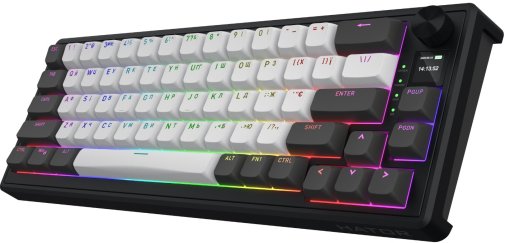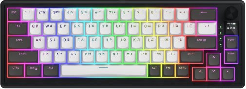 Кейкапи виконані з якісного double-shot PBT у зручному OMA-профілі з наскрізним підсвічуванням, що зберігає чіткість легенд навіть у темряві. Фірмове програмне забезпечення відкриває широкі можливості кастомізації RGB, макросів, функцій кнобу та екрану. У комплекті йде все необхідне: донгл 2.4 ГГц, знімний кабель USB Type-C, інструмент для зняття кейкапів і перемикачів. Skyfall Pro Wireless — це не просто клавіатура, а справжній інструмент для тих, хто цінує комфорт, тишу та преміальну якість.