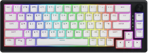 Компактний 65% формат звільняє значну частину столу для миші, зберігаючи при цьому повноцінні стрілки, функціональні клавіші та мультимедійний регулятор (кноб) для швидкого керування гучністю, відтворенням чи іншими налаштуваннями. Три режими підключення — 2.4 ГГц (через донгл) для мінімальної затримки в іграх, Bluetooth 5.3 для підключення до ноутбуків, планшетів чи смартфонів і дротове USB — роблять клавіатуру універсальною. Частота опитування 1000 Гц у всіх режимах гарантує стабільну та миттєву реакцію, а повний N-Key Rollover виключає пропуски натискань навіть у найінтенсивніших моментах.
