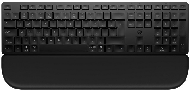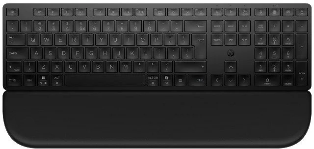 HP 580K з підставкою для долонь — це бездротова клавіатура для роботи та підвищення продуктивності, яка стане ідеальним вибором для тих, хто шукає тиху бездротову клавіатуру з підставкою для зап'ясть, підключенням до кількох пристроїв і захищеним з'єднанням для офісу або вдома. Ключова відмінність від молодшої моделі HP 490K — вбудована магнітна підставка для долонь, що знімається і кріпиться без зайвих зусиль.