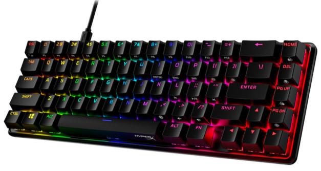 - Механічні перемикачі HyperX Red – лінійні, тихі, чутливі до натискання.