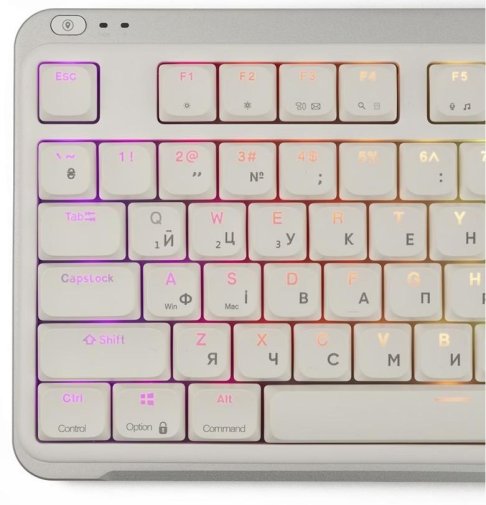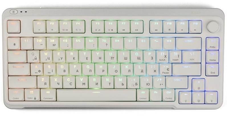 Підключення реалізовано у трирежимному варіанті: через Bluetooth 5.0, радіоканал 2.4G або дротове USB-з’єднання. Це дає змогу одночасно працювати з кількома пристроями — від ноутбука й планшета до смартфона — без зайвих перемикань. Потужний акумулятор забезпечує тижні автономної роботи навіть при активному використанні, а зарядка відбувається через зручний USB-C кабель. Яскрава RGB-підсвітка з понад 20 динамічними режимами та індивідуальним налаштуванням кожної клавіші через фірмове ПЗ додає клавіатурі естетичної привабливості та практичності в темний час доби.