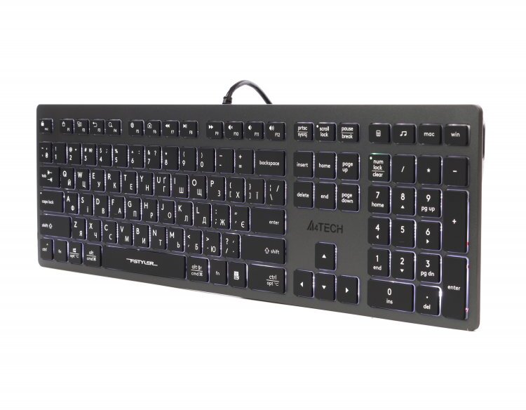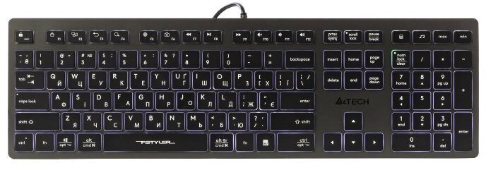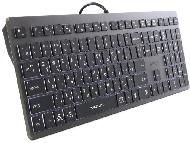 A4 Tech FX60H — офісна клавіатура дротового типу. Має ергономічну конструкцію, яка дозволяє швидко набирати текст, уникаючи помилок. Підходить для сліпого набору, а також роботі із числовими даними, адже оснащена цифровим блоком. Кабель у довжині складає 1.5 м, чого достатньо для легкого підключення пристрою до ПК.