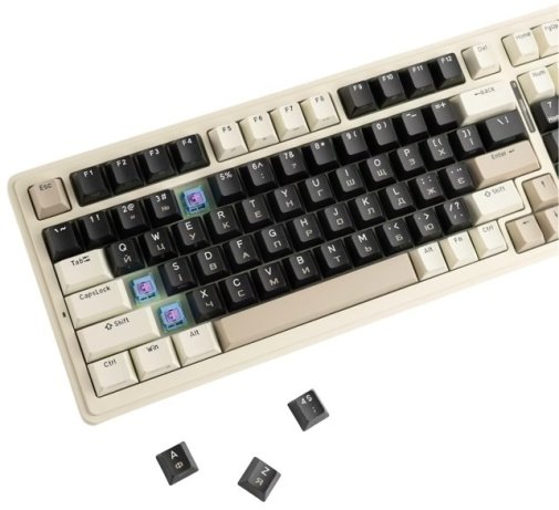 Клавіатура оснащена перемикачами Rainbow Switch, які забезпечують чіткий відгук і стабільну роботу як у динамічних іграх, так і під час роботи з текстами. Міцні PBT-ковпачки стійкі до стирання, не втрачають текстуру з часом і приємні на дотик, що гарантує довговічність навіть при активному щоденному використанні.