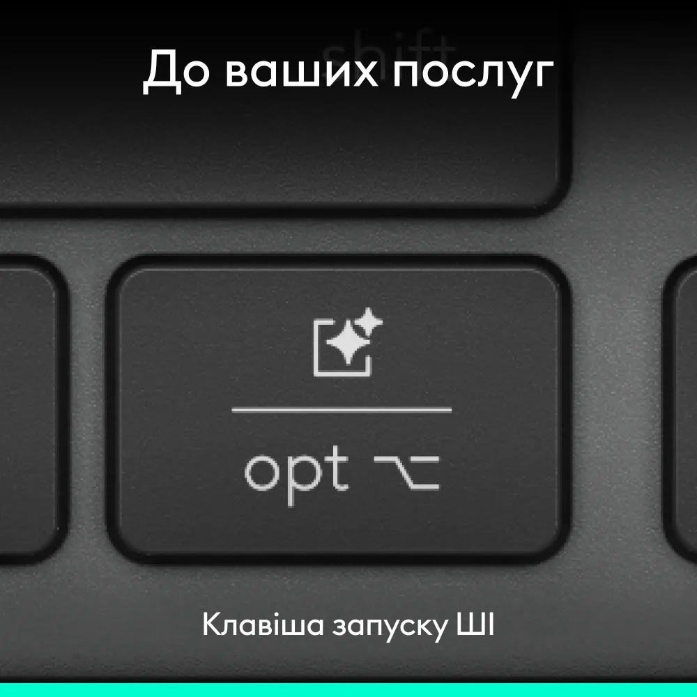 Функціональність розширюється через додаток Logi Options+, що дозволяє налаштовувати комбінації клавіш для швидкого доступу до функцій, таких як диктування чи перемикання режимів, а також інтеграцію з AI-інструментами для автоматизації рутинних завдань, з підтримкою сертифікації Zoom для безперебійних зустрічей. Конструкція забезпечує тиху роботу, з низьким енергоспоживанням, що робить її придатною для тривалих сесій у різних освітлених умовах.