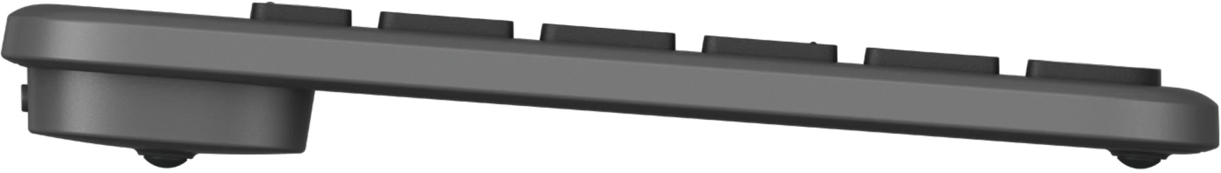 Ця модель успадковує традиції Logitech у створенні ергономічних пристроїв, пропонуючи повнорозмірний макет з числовою клавіатурою та окремим блоком стрілок, що забезпечує зручність для повсякденних завдань, від редагування документів до вебконференцій, з низьким профілем клавіш для тихого та плавного друку, подібного до преміумклавіатур без зусиль натискання. Сумісна з кількома операційними системами, включаючи Windows і macOS, дозволяючи безшовне перемикання між пристроями через Bluetooth або опціональний USB-приймач, з можливістю підключення до трьох комп'ютерів чи планшетів одночасно для гнучкої багатозадачності.