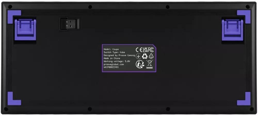Proove Gaming Coupe — це компактна механічна клавіатура у формфакторі 75% з 82 клавішами, яка орієнтована на геймерів і досвідчених користувачів, що цінують швидкість відгуку, якість набору та свободу від проводів. Корпус виготовлено з міцного ABS-пластику, а кейкапи — з PBT-пластику, відомого своєю стійкістю до зношування, жирових слідів та вицвітання маркування навіть після тривалого інтенсивного використання. Вага клавіатури становить 850 г — достатньо для стабільного положення на столі без ковзання.