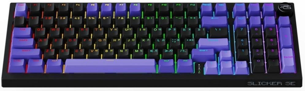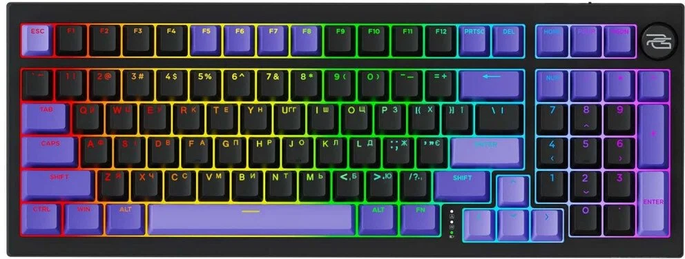 Клавіатура виконана в сучасному формфакторі з 98 клавішами, що поєднує повноцінний набір і компактні розміри. Корпус з ABS надає міцності, а кейкапи з PBT стійкі до стирання і зберігають текстуру навіть після тривалого використання. Акуратна конструкція з рівномірною підсвіткою підкреслює стиль і робить пристрій привабливим як для роботи, так і для ігор.