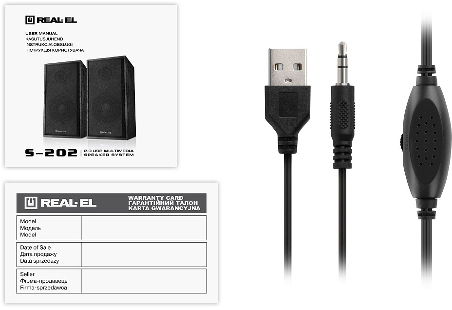 Колонки REAL-EL S-202 являють собою практичне та доступне рішення для базового аудіо на ПК чи ноутбуку, що поєднує стереозвук з USB-живленням для щоденного використання. Завдяки компактності та простому з'єднанню вони ідеальні для обмеженого простору.