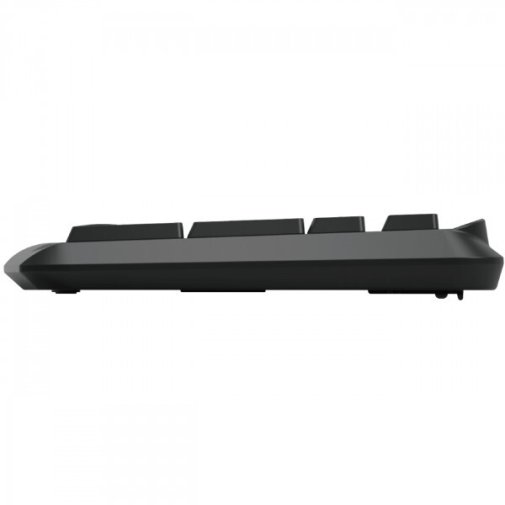 Клавіатура має 104 клавіші, включаючи цифровий блок і функціональні клавіші, та представлена у версії UA з кириличними символами. Її ергономічна форма та тихе натискання клавіш дозволяють комфортно працювати протягом тривалого часу, а ресурс клавіш до 10 мільйонів натискань гарантує довговічність. Компактний корпус чорного кольору зручний у використанні та мінімізує безлад на столі завдяки єдиному USB-кабелю довжиною близько 1,4 м.