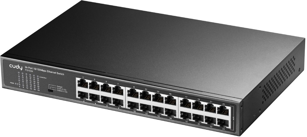 Cudy FS1024 — це надійний комутатор для створення стабільної мережі в офісі чи домашній лабораторії, де потрібна простота й ефективність. З 24 портами Fast Ethernet на швидкості 10/100 Мбіт/с він забезпечує безперебійне з'єднання для кількох пристроїв одночасно, дозволяючи легко розширювати мережу без складних налаштувань. Металевий корпус і стандартний дизайн 1U для стійки роблять його зручним для професійного монтажу, а комплект кріплень спрощує встановлення.
