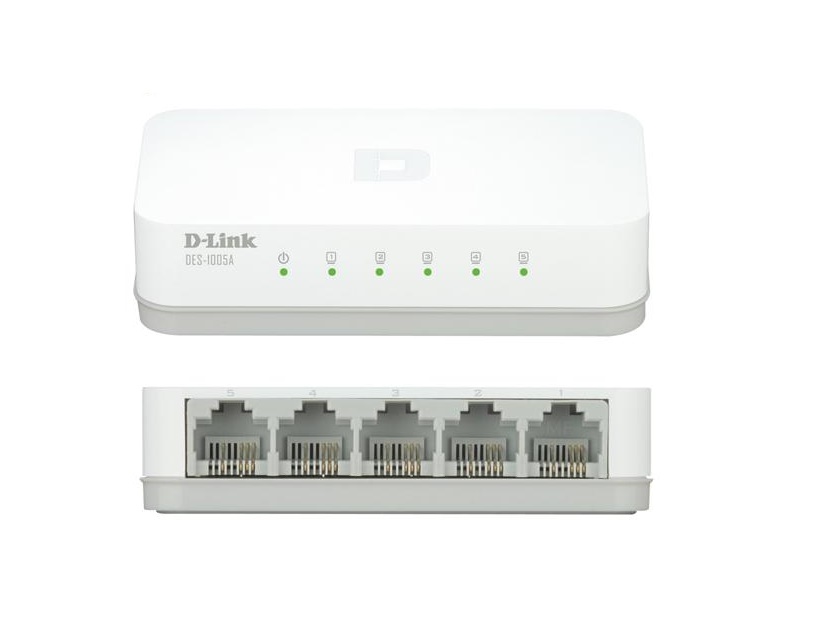 Комутатор DES-1005A з 5 портами дозволяє швидко створити високошвидкісну, надійну і ефективну дротову мережу вдома або в офісі. Некерований комутатор DES-1005A розроблений для збільшення продуктивності невеликих робочих груп, забезпечуючи в той же час високий рівень гнучкості. Цей пристрій дозволяє користувачам просто підключити будь-який порт до мережі для збільшення смуги пропускання, підвищення швидкодії і якості роботи з великим обсягом трафіку. Підключіть DES-1005A до декількох комп'ютерів, щоб надати спільний доступ до файлів і папок, або підключіть його до маршрутизатора, щоб спільно використовувати Інтернет-з'єднання.