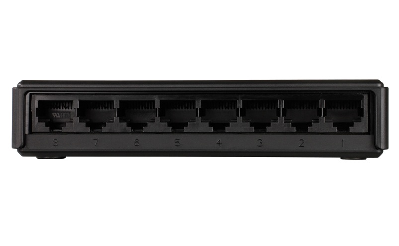 D-Link DES-1008A — фундамент вашої швидкісної та надійної мережі в офісі або вдома. Комутатор має вісім портів 10/100 Мбіт/с, із автоматичним визначенням мережевої швидкості. Вони керовані потоком 802.3x та підтримують стандарти 10BASE-T і 100Base-TX. Комутатор досить легкий в налаштуванні, завдяки функції MDI/MDIX, яка сама визначає тип під'єднаних кабелів. Ергономічний чорний корпус має сучасний вигляд та невеликі габарити.