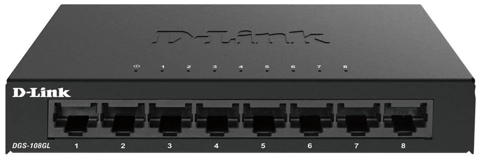 D-Link DGS-108GL/E — 8-портовий гігабітний металевий некерований настільний комутатор, який чудово підійде для домашніх офісів або підприємств малого та середнього бізнесу (SMB), оскільки забезпечує просте та швидке розширення мережі, модернізацію з’єднань за допомогою простого рішення «plug and play».