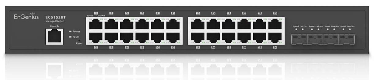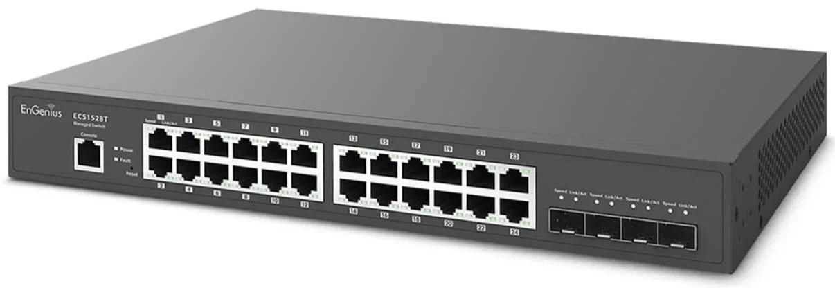 EnGenius ECS1528T — це компактний керований комутатор рівня Layer 2+ із 24 портами Gigabit Ethernet та 4 портами SFP+ для високошвидкісних з’єднань. Завдяки 13-дюймовому дизайну 1U він ідеально підходить для монтажу в стійку та економить місце у великих корпоративних мережах. Комутатор забезпечує пропускну здатність 128 Гбіт/с, що гарантує ефективну передачу даних без затримок.