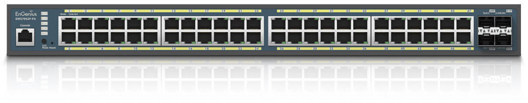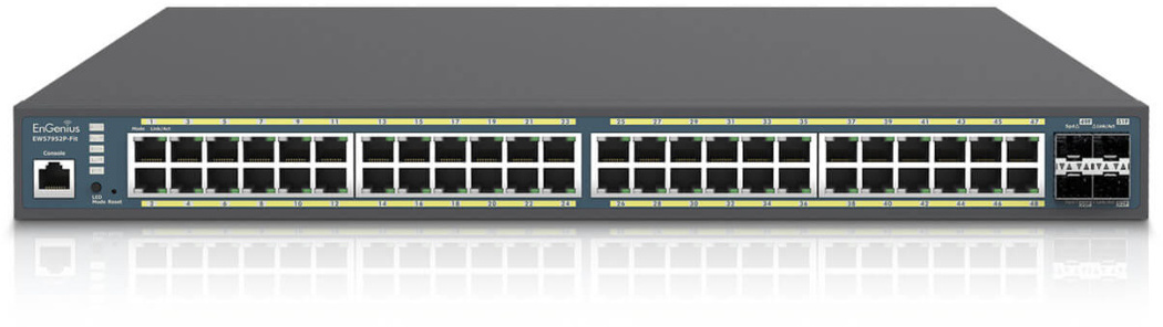 Комутатор EnGenius FitSwitch EWS7952P-FIT є потужним 48-портовим гігабітним пристроєм з підтримкою PoE+ та бюджетом живлення 410 Вт. Він оснащений чотирма портами SFP для високошвидкісного з'єднання оптоволокном, що робить його ідеальним для середніх і великих мереж малого та середнього бізнесу. Завдяки технології Layer 2+ комутатор забезпечує ефективне керування трафіком, високу продуктивність і надійність у роботі з великою кількістю підключених пристроїв.