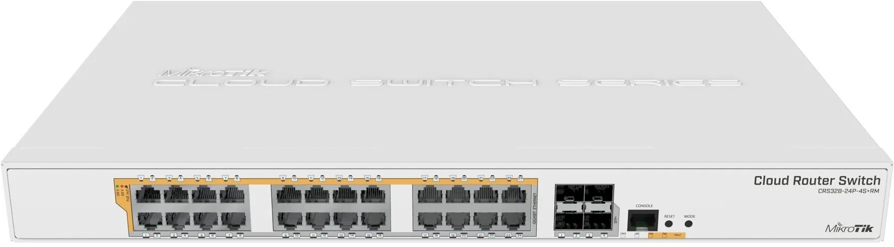 MikroTik CRS328-24P-4S+RM — це потужний комутатор у компактному 1U rackmount-корпусі, який ідеально підходить для офісів, провайдерів чи мереж з великою кількістю пристроїв, що потребують живлення по Ethernet. Завдяки 24 гігабітним Ethernet-портам і чотирьом швидкісним 10G SFP+ портам він забезпечує високу пропускну здатність і гнучкість підключення, дозволяючи легко інтегрувати оптичні з’єднання чи швидкі аплінки.