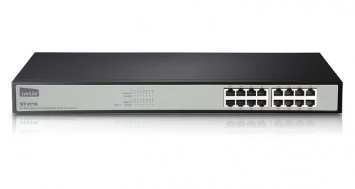 Комутатор Netis ST-3116 встановлюється в стійку, оснащений 16 портами RJ45 (10/100 Мбіт/с) з функцією автопогодження. Це пристрій ідеальний для невеликих або середніх офісів. Всі порти підтримують функцію автоматичного переключення MDI/MDIX, завдяки чому немає необхідності використовувати перехресні кабелі і порти висхідного напрямку. 16-портовий комутатор Fast Ethernet, що встановлюється в стійку, надає високоефективне, що не вимагає додаткових удосконалень, стандартне рішення для модернізації вашої старої мережі до мережі зі швидкістю 100 Мбіт/с.