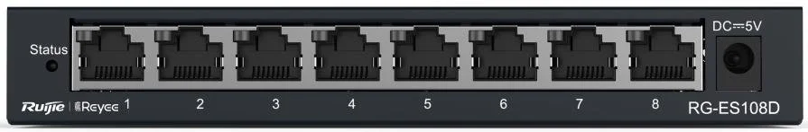 Ruijie RG-ES108D — некерований комутатор з 8-ма портами, який виготовлений у металевому корпусі, є економічно вигідним рішенням для використання у корпоративному середовищі для малого та середнього бізнесу. Простий в налаштування, адже підтримує функцію Plug&Play. Завдяки відсутності вентилятора є безшумним в роботі. Призначений для різних сценаріїв використання: для домашнього офісу, кафе, магазина, систем спостереження.