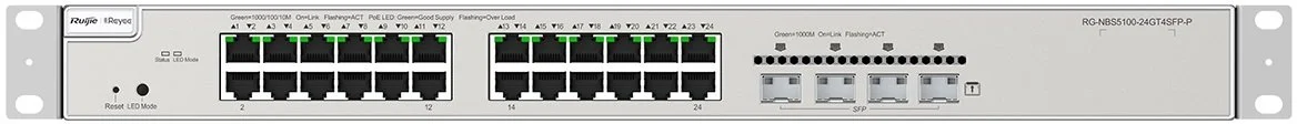 Комутатор Ruijie RG-NBS5100-24GT4SFP-P – це високопродуктивне рішення для корпоративних мереж, яке поєднує 24 гігабітні порти 10/100/1000Base-T із підтримкою PoE/PoE+ та 4 порти SFP для аплінків, забезпечуючи швидкість передачі даних до 56 Gbps із форвардінговою здатністю 42 Mpps. Цей комутатор третього рівня ідеально підходить для офісів, де потрібна стабільна робота ресурсомістких застосунків, дозволяючи легко масштабувати мережу без значних витрат.