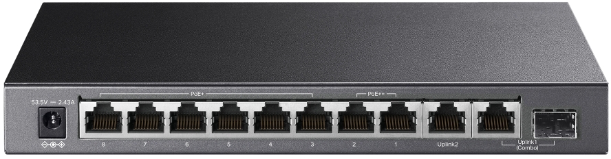 Вісім PoE-портів здатні автоматично виявляти підключені пристрої та видавати до 30 Вт на кожен — цього достатньо для живлення IP-камер 4K, точок доступу Wi-Fi 6, VoIP-телефонів чи навіть освітлення. Завдяки інтелектуальному розподілу енергії комутатор сам визначає пріоритети та захищає обладнання від перевантаження, а функція Extended Mode збільшує дальність передачі PoE до 250 метрів.