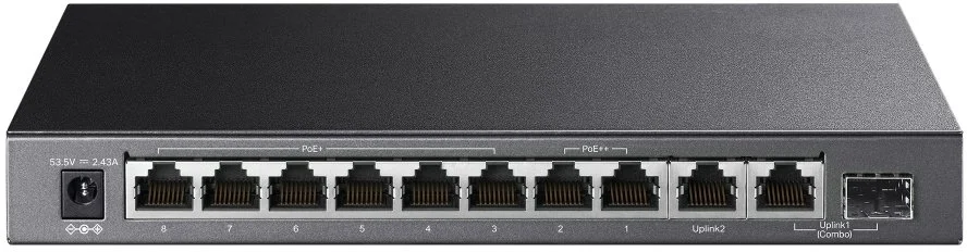Комутатор TP-Link TL-SG1210PP — це потужне та гнучке рішення для невеликих офісів, кафе чи домашніх мереж, де потрібні одночасно швидка проводова мережа та живлення PoE-пристроїв. У компактному металевому корпусі розміщено 10 гігабітних портів: 8 з них підтримують PoE+ з загальним бюджетом 123 Вт, а 1 гігабітний SFP-слот дозволяє під'єднати оптоволокно для великих відстаней.