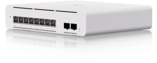 Ключовою особливістю USW-Pro-XG-8-PoE є розширена підтримка Power over Ethernet (PoE++), з загальною потужністю до 155 Вт. Порти можуть живити пристрої з високим енергоспоживанням, такі як точки доступу Wi-Fi 7 або IP-камери, сумісні з стандартами 802.3bt. Крім того, комутатор оснащений портами SFP+ для оптоволоконних з'єднань на швидкості 10 GbE, що розширює можливості підключення для довгих дистанцій. Усе це супроводжується пасивним охолодженням, яке гарантує безшумну роботу навіть під навантаженням, роблячи пристрій придатним для офісів чи студій.