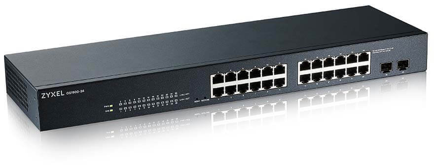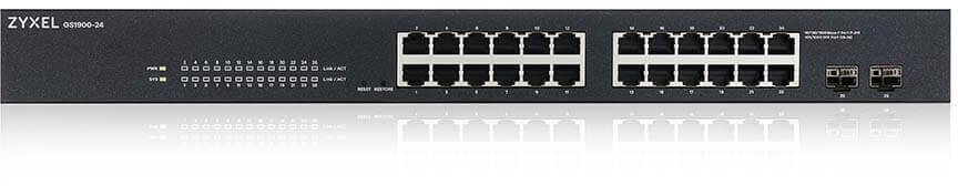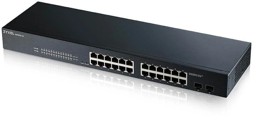 Zyxel GS1900-24 — це 24-портовий гігабітний смарт-керований комутатор з двома додатковими SFP-портами для підключення по оптичному волокну, що в сумі дає 26 портів. Він розроблений як ідеальне рішення для невеликих і середніх компаній, яким потрібна надійна, проста у налаштуванні та водночас функціональна мережева інфраструктура.