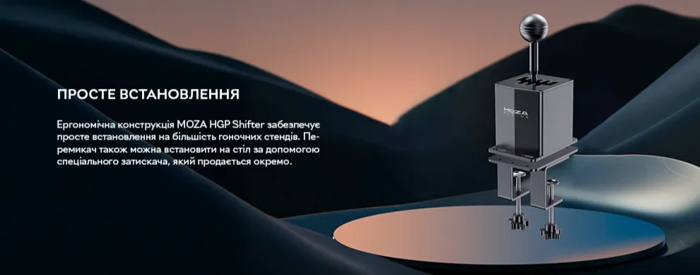 MOZA HGP Shifter гнучкий у встановленні та підключенні. Він легко монтується на більшість симуляторів, а за допомогою додаткового кріплення ви зможете встановити його на стіл або на будь-яку іншу горизонтальну поверхню. Він може бути підключений до вашого ПК через USB-порт, або до кермової бази із сумісним портом.
