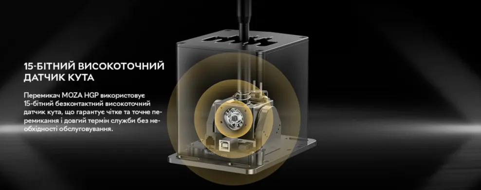 Основою точності коробки передач є 15-бітний безконтактний високоточний датчик кута. Він робить процес керування плавним і стабільним, що дозволяє відчути кожен рух перемикача. Безконтактна конструкція датчика гарантує довготривалу роботу без необхідності обслуговування.