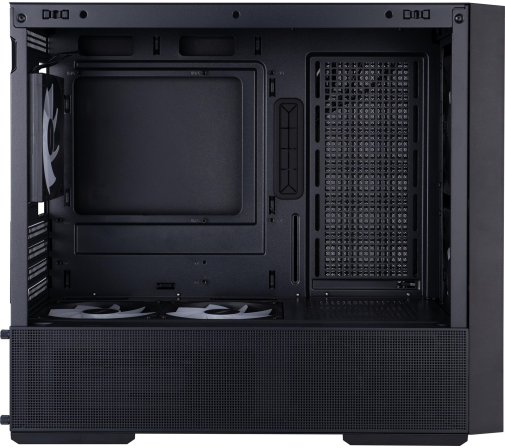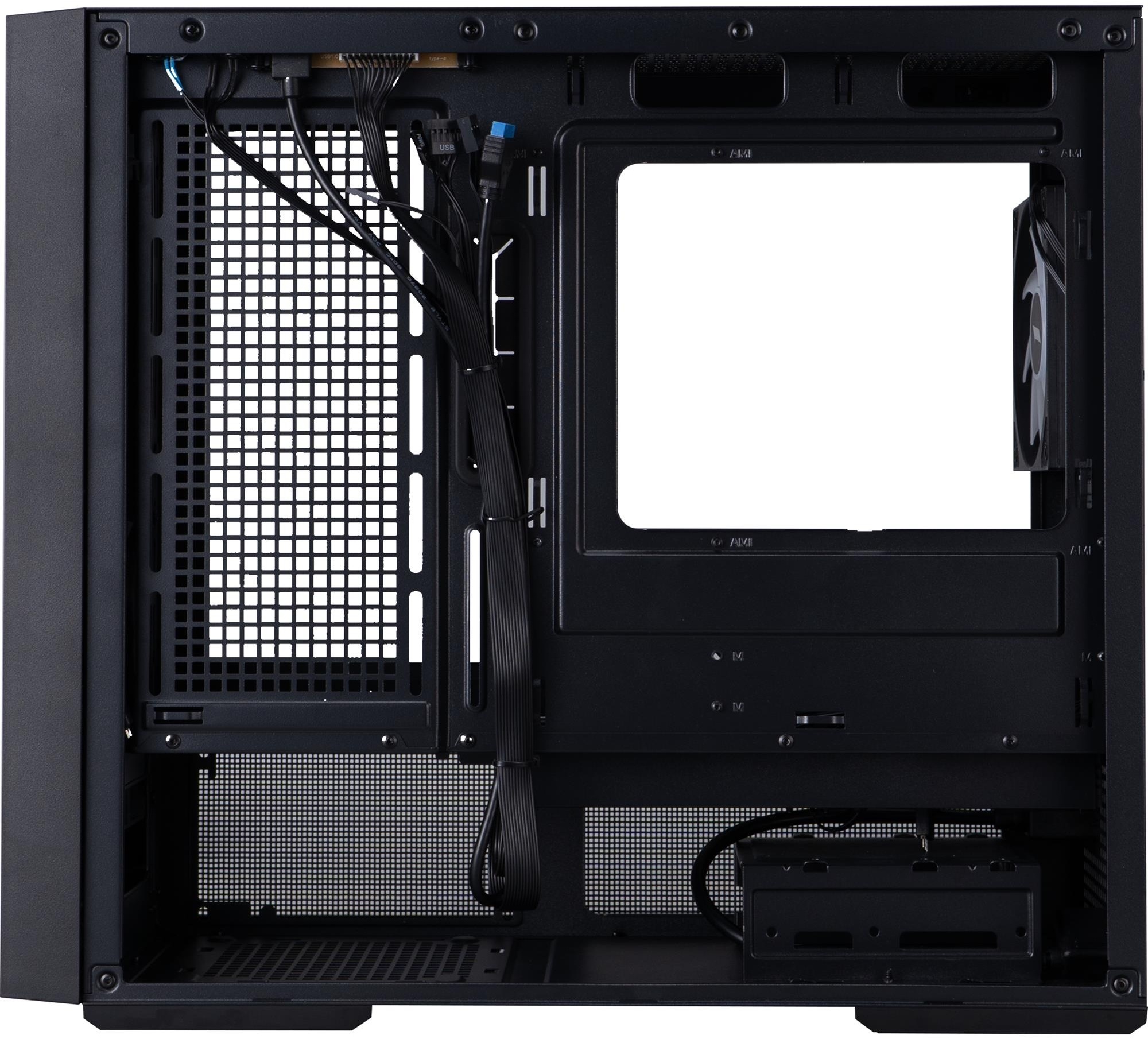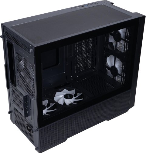 Незважаючи на компактні габарити (457 × 215 × 407 мм), AU6 вміщує відеокарти довжиною до 390 мм — тобто будь-які актуальні флагмани на кшталт RTX 4080/4090 або RX 7900 XT встановляться без проблем. Максимальна висота кулера процесора — 170 мм, що дає змогу використовувати більшість популярних повітряних систем охолодження. Блок живлення розміщується внизу спереду (до 170 мм завдовжки), що покращує баланс ваги та організацію внутрішнього простору.