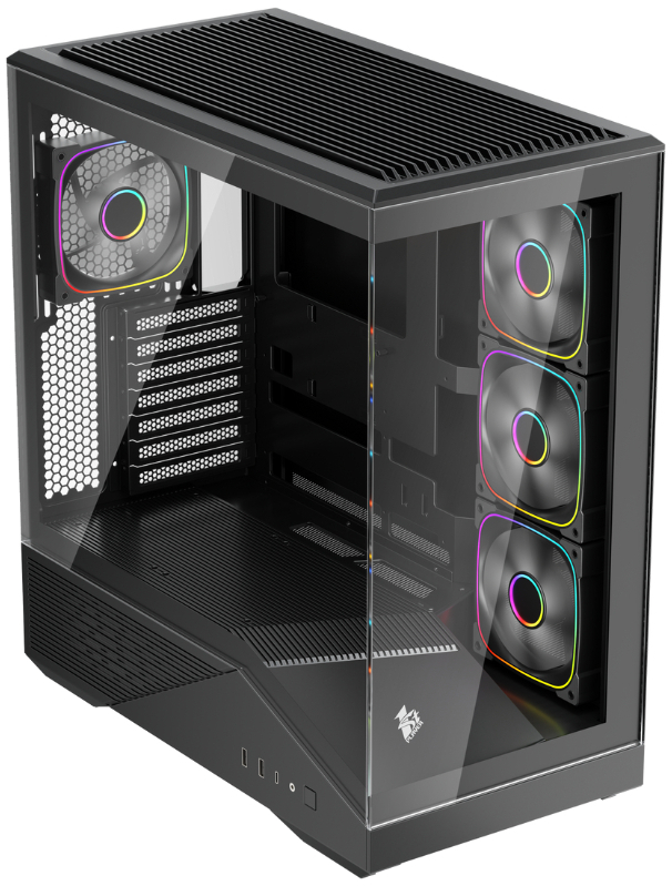 Корпус 1stPlayer GM7-BK-3FN7R-1FN7 — це високоефективний Midi-Tower, створений для геймерів та професіоналів, які цінують поєднання естетики та функціональності. Завдяки панорамному огляду 270° із загартованого скла на передній та бічній панелях без перегородки на куті, ви отримуєте безперешкодний вид на внутрішні компоненти вашої системи, що дозволяє продемонструвати всі «начинки» у всій красі.