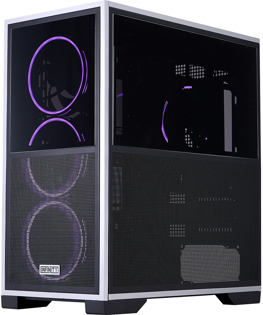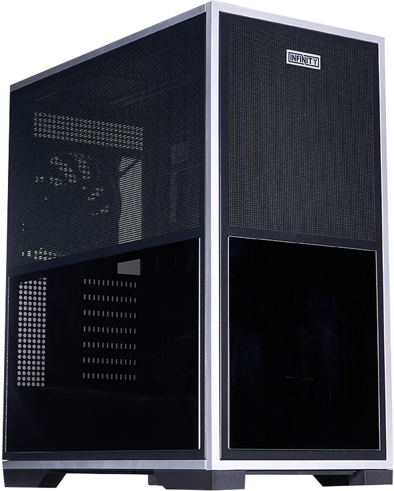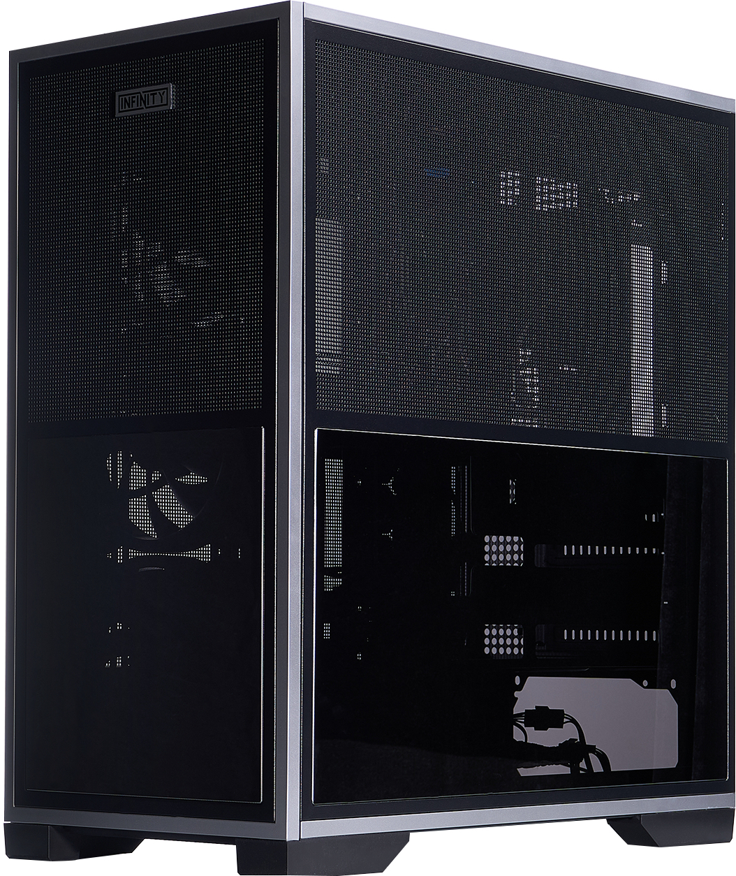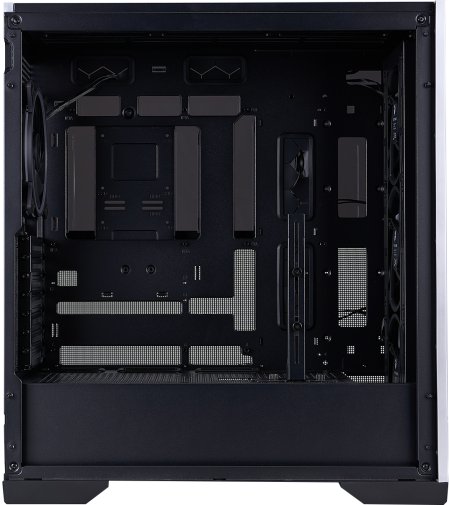 Ще одна унікальна риса — симетричний дзеркальний дизайн (Symmetrical Mirror Design), який робить передню та бічну панелі реверсивними. Завдяки цьому корпус можна зібрати в «перевернутому» вигляді, змінюючи напрямок потоку повітря або адаптуючи зовнішній вигляд під конкретне розташування на столі. Така гнучкість дозволяє користувачу самостійно визначати, як саме виглядатиме система — класично чи з акцентом на інший бік.