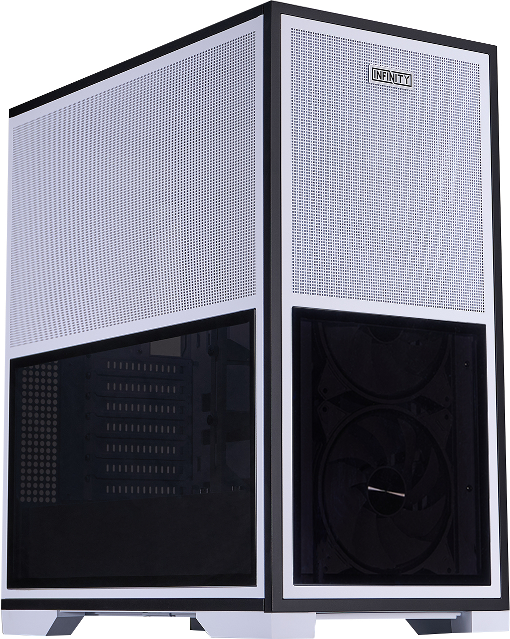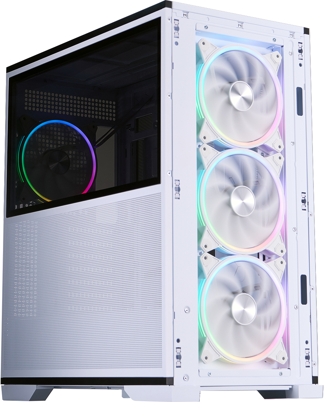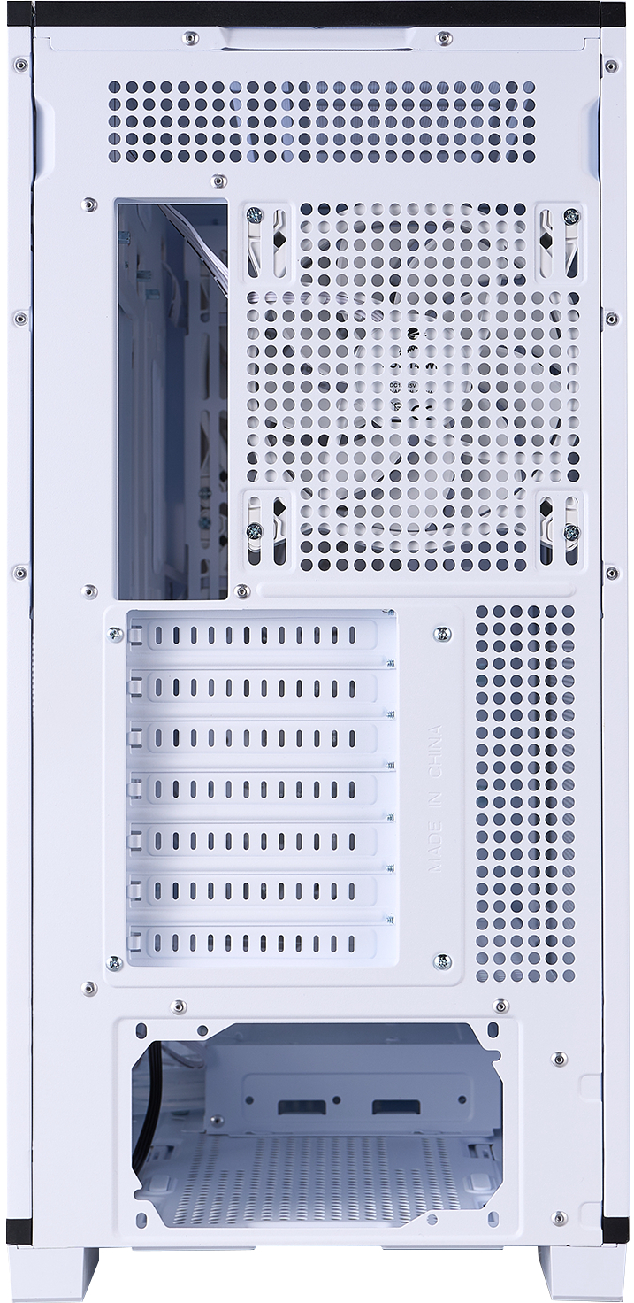 Ще одна унікальна риса — симетричний дзеркальний дизайн (Symmetrical Mirror Design), який робить передню та бічну панелі реверсивними. Завдяки цьому корпус можна зібрати в «перевернутому» вигляді, змінюючи напрямок потоку повітря або адаптуючи зовнішній вигляд під конкретне розташування на столі. Така гнучкість дозволяє користувачу самостійно визначати, як саме виглядатиме система — класично чи з акцентом на інший бік.
