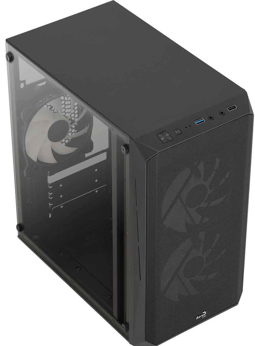 Aerocool CS-107-A-BK-v2 — це стильний та надійний корпус настільного комп'ютера, який дозволить самостійно зібрати систему із потрібною продуктивністю. Типорозмір корпусу Mini-Tower дозволяє отримати компактну збірку, використовуючи материнські плати Micro-ATX, Mini-ITX.