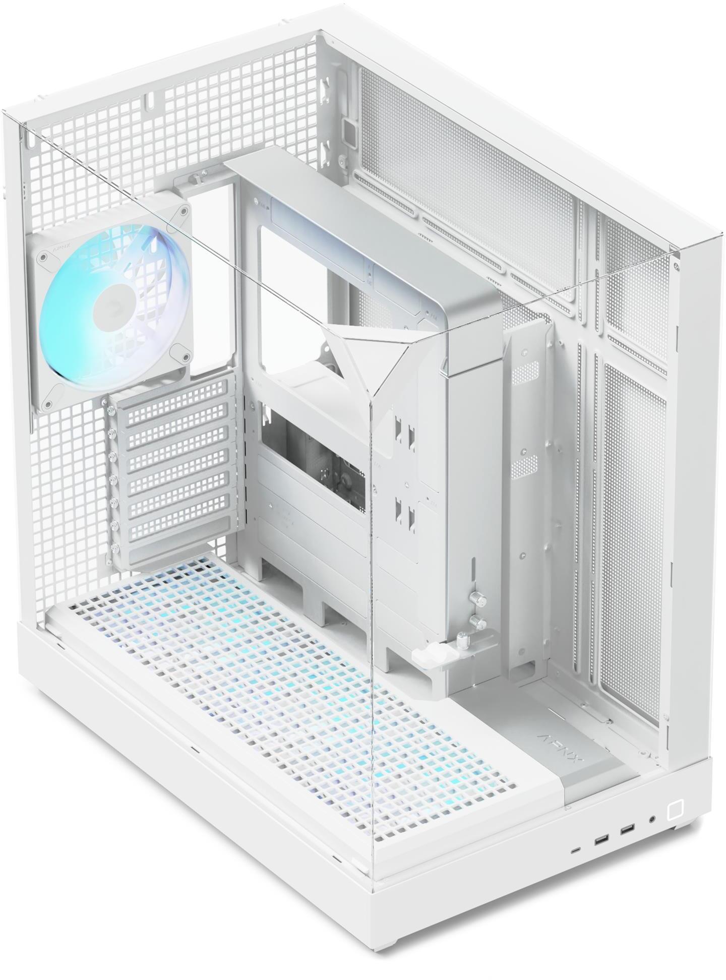 APNX V2 — це висококласний корпус для ПК, створений для максимально ефективного охолодження, стильного зовнішнього вигляду та широких можливостей конфігурації. Завдяки продуманій конструкції він забезпечує відмінні термальні показники, що робить його чудовою основою для потужних ігрових і професійних систем. Велика площа огляду дозволяє підкреслити красу зібраних компонентів і продемонструвати їх без обмежень, а зручні технологічні рішення гарантують комфорт під час збирання.