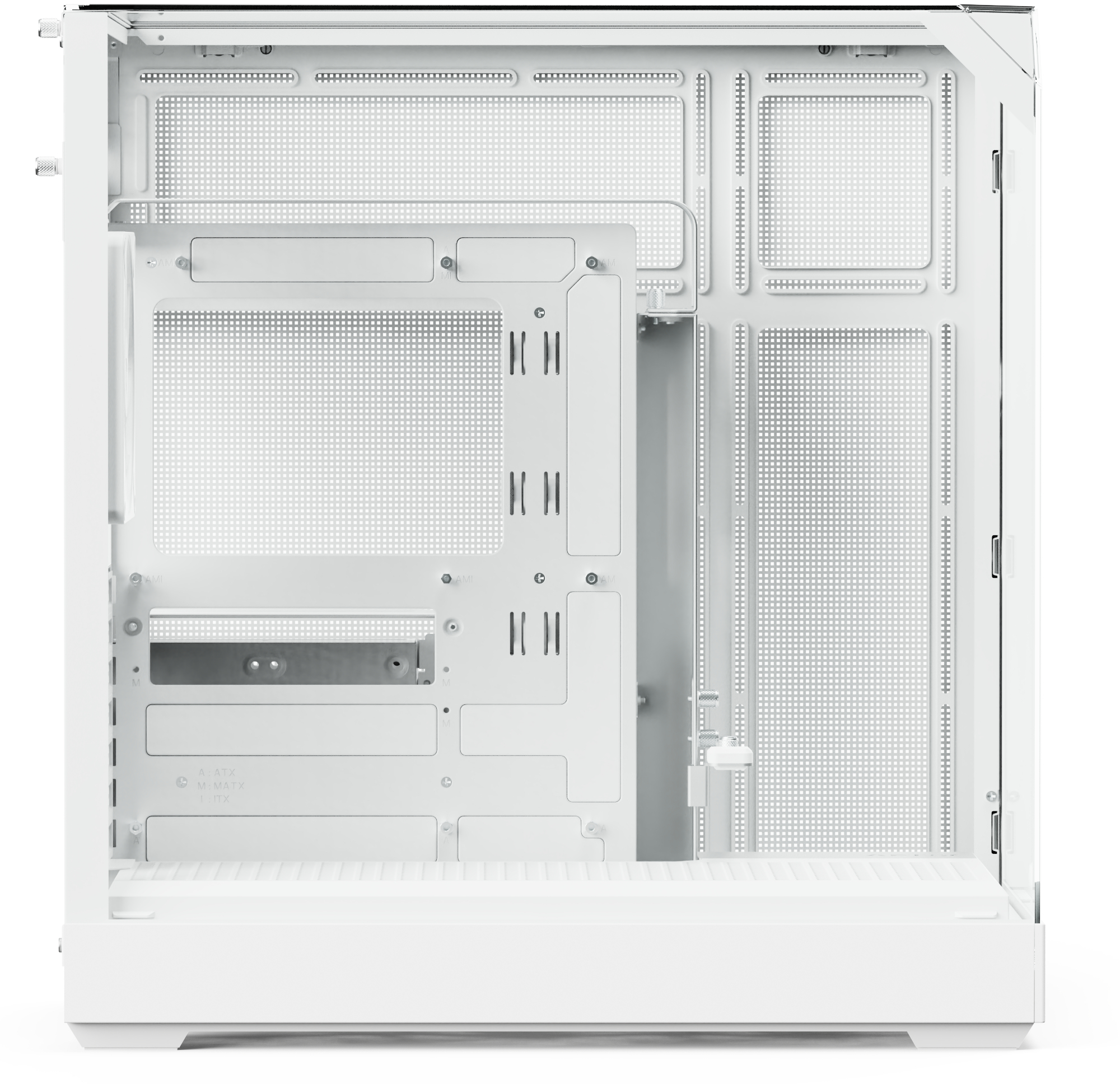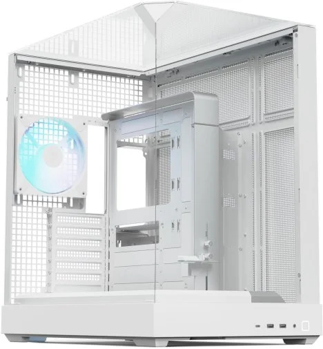 Панорамні панелі із загартованого скла з трьох боків — спереду, збоку та зверху — забезпечують огляд внутрішньої частини корпусу майже на 86,5%. Це дає можливість повністю оцінити дизайн системи, підсвічування та компонування.
