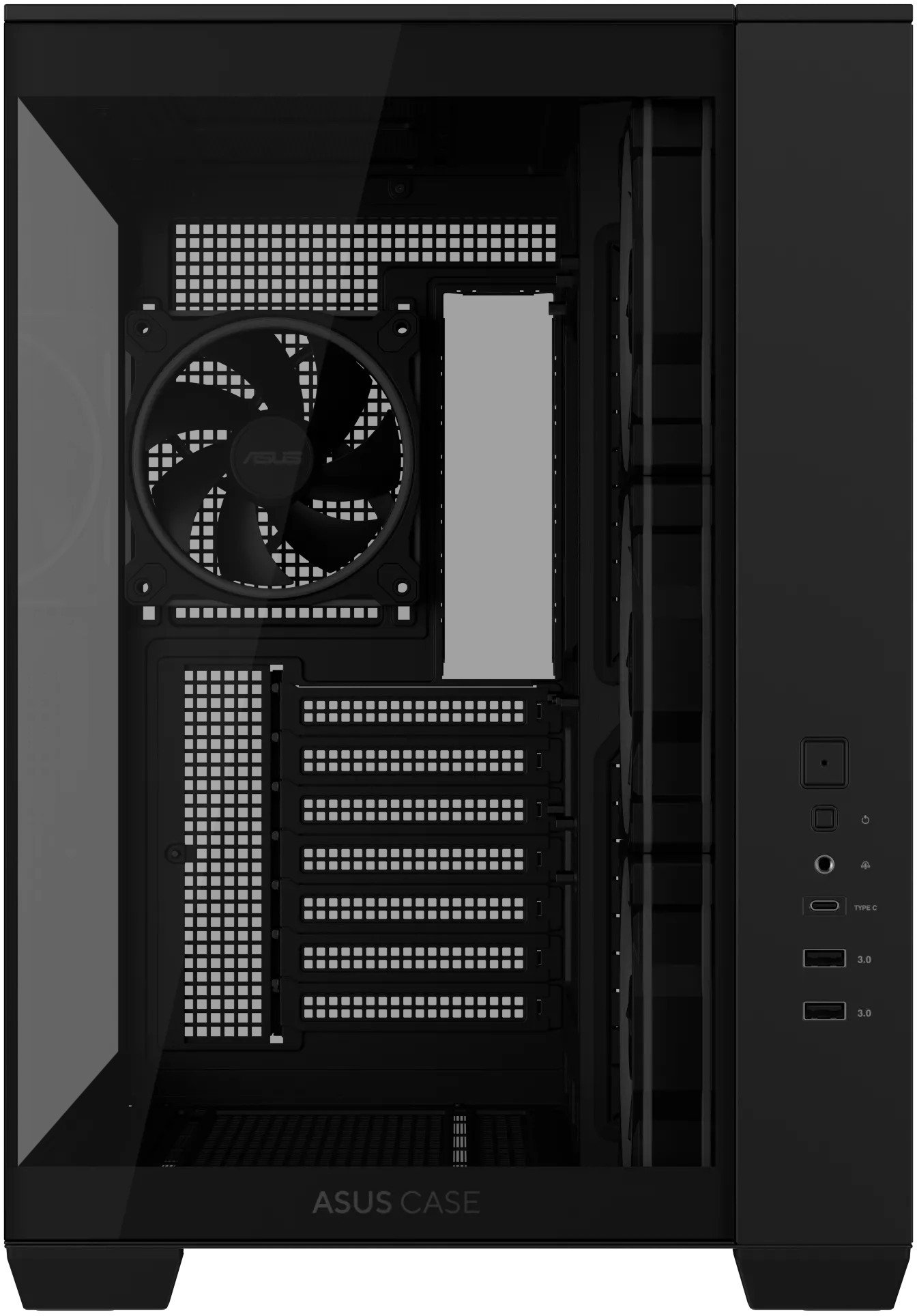 Особливістю ASUS A32 PLUS є панорамний дизайн із загартованим склом на передній і бічній панелях, що забезпечує огляд внутрішніх компонентів на 270°. Відсутність передньої стійки створює безперешкодний вигляд, підкреслюючи естетику компонентів і підсвічування. Корпус також оснащений бічними панелями, які легко знімаються завдяки інтуїтивному механізму, що полегшує доступ до внутрішнього простору. Силіконові прокладки для кабелів сприяють охайному вигляду та спрощують організацію проводів, підвищуючи як естетику, так і довговічність збірки.