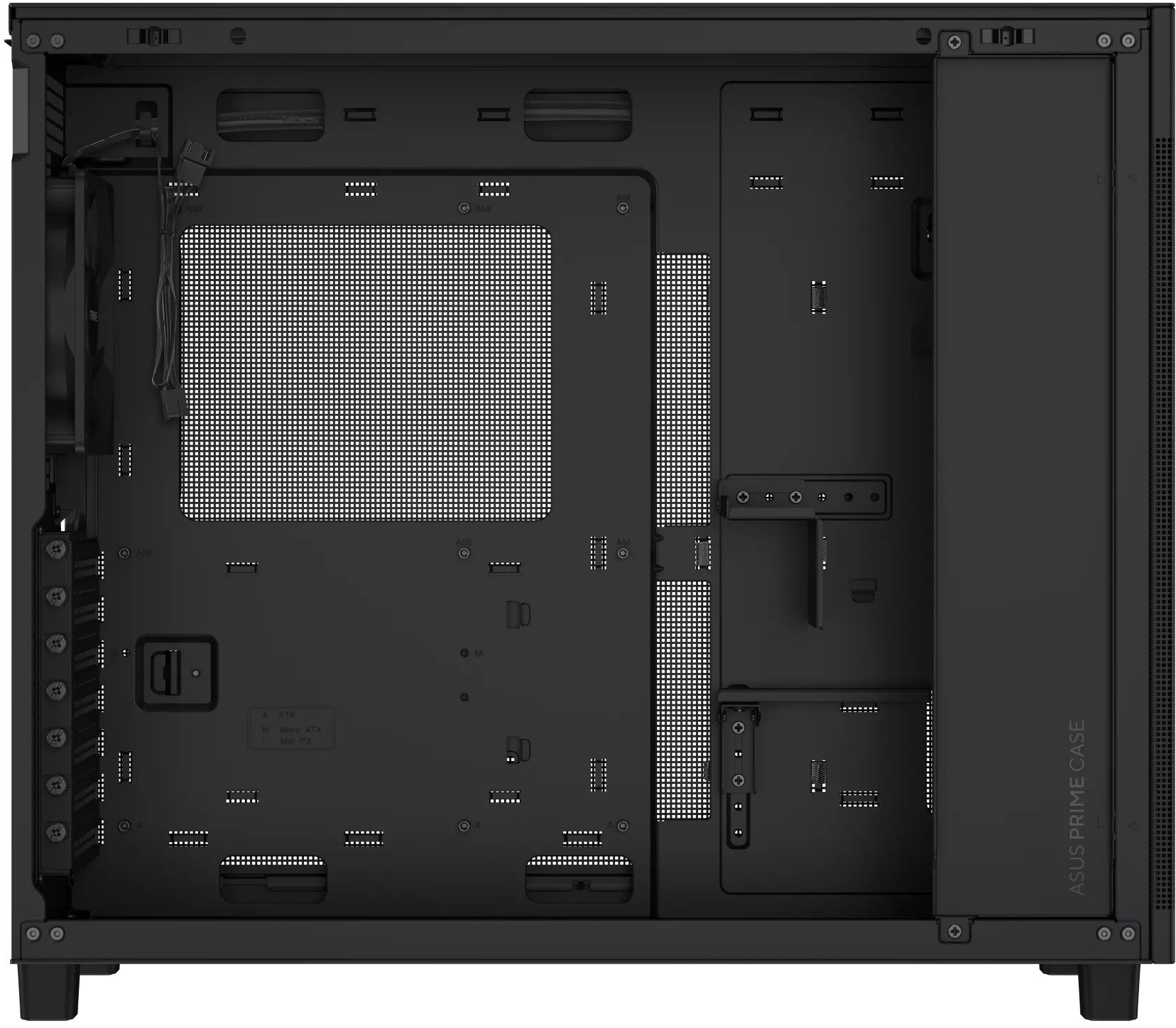 Корпус ASUS Prime AP303 Mesh — це стильне та функціональне рішення формату Midi-Tower, яке поєднує мінімалістичний дизайн із високою практичністю. Доступний у класичному виконанні, він оснащений великою перфорованою передньою панеллю, що забезпечує відмінний приплив повітря до компонентів і створює ефектний вигляд системи завдяки підсвітці вентиляторів.