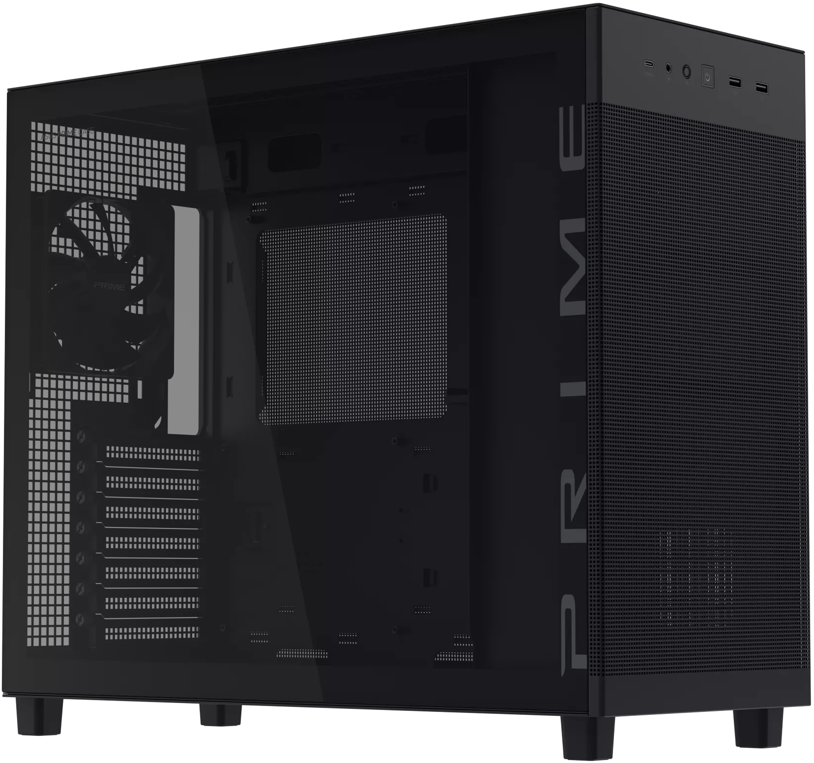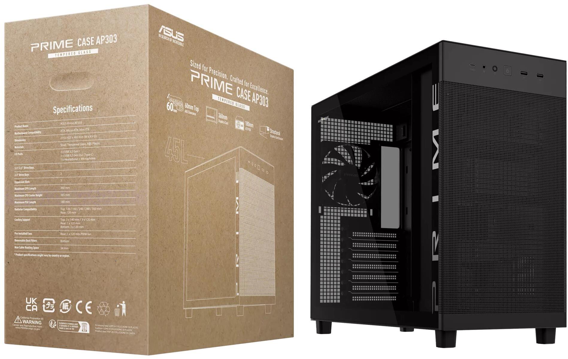 Asus Prime AP303 є компактним корпусом об’ємом лише 44 літри, який при цьому повністю підтримує материнські плати стандарту ATX. Завдяки продуманій конструкції він здатен вмістити відеокарти довжиною до 360 мм, блоки живлення ATX довжиною до 165 мм, а також радіатори рідинного охолодження розміром до 360 мм. Така комбінація робить корпус універсальним рішенням для потужних ігрових та робочих систем у відносно невеликому формфакторі.