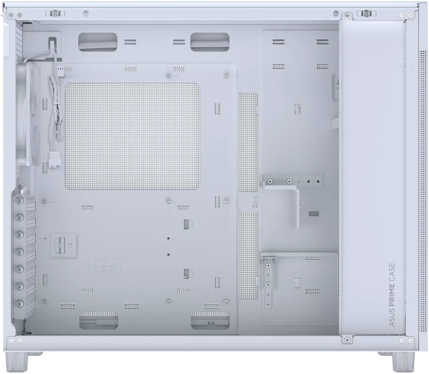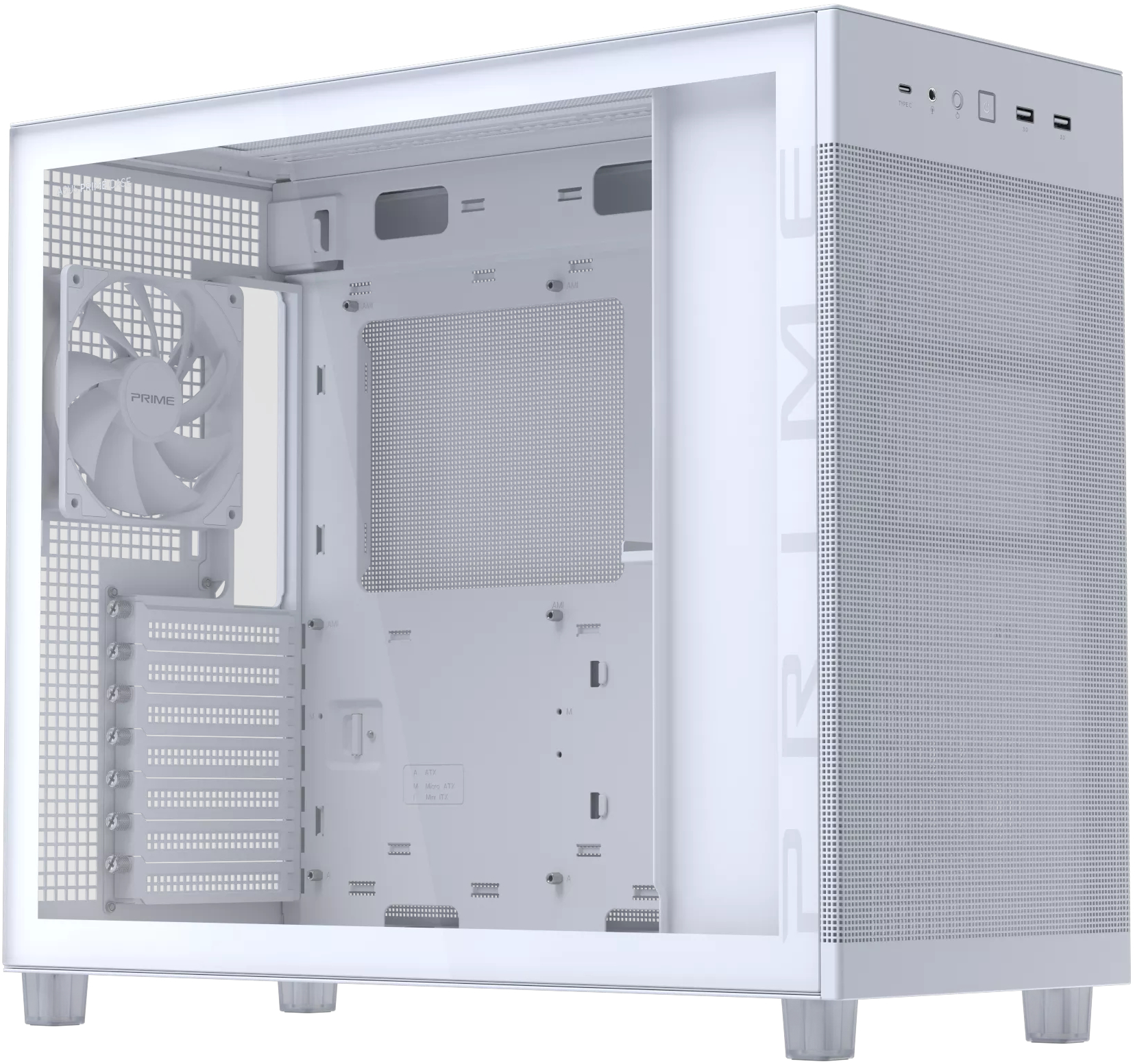 Asus Prime AP303 є компактним корпусом об’ємом лише 44 літри, який при цьому повністю підтримує материнські плати стандарту ATX. Завдяки продуманій конструкції він здатен вмістити відеокарти довжиною до 360 мм, блоки живлення ATX довжиною до 165 мм, а також радіатори рідинного охолодження розміром до 360 мм. Така комбінація робить корпус універсальним рішенням для потужних ігрових та робочих систем у відносно невеликому формфакторі.
