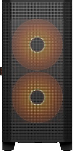 Особливістю корпусу є модульна передня I/O-панель, яка дозволяє гнучко розміщувати порти та кнопки залежно від орієнтації системного блоку. Серед інтерфейсів — швидкісний USB 3.2 Gen 2 Type-C (10 Гбіт/с), два USB 3.0 Type-A, аудіороз’єм для гарнітури та окрема кнопка керування RGB-підсвіткою. Корпус також отримав зручні рішення для користувача: швидкознімний пиловий фільтр на магнітах спереду, знімну верхню панель для легкого монтажу та додатковий простір для акуратного укладання кабелів.