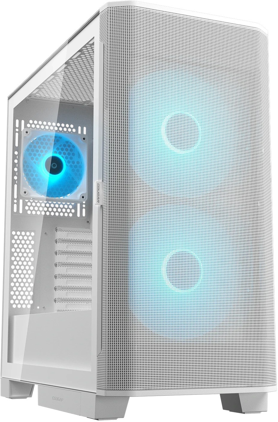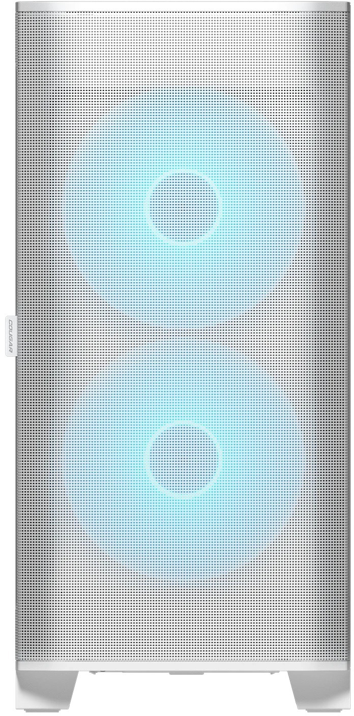 Cougar Airface FLO RGB — це сучасний корпус, створений з акцентом на максимальний повітряний потік та ефективне охолодження компонентів. Передня панель виконана у класичному сітчастому дизайні, що забезпечує безперешкодний забір повітря. Корпус комплектується двома великими 180-мм ARGB PWM-вентиляторами спереду та одним 120-мм ARGB PWM-вентилятором ззаду, які працюють у діапазоні обертів з підтримкою PWM-регулювання. Завдяки такій конфігурації та продуманій вентиляції Airface FLO RGB чудово справляється з відведенням тепла навіть у потужних ігрових збірках.