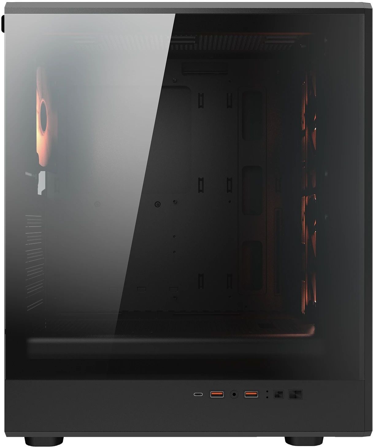 Внутрішній простір продумано до дрібниць: довжина відеокарт до 320 мм, висота процесорного кулера до 175 мм, місце для блоків живлення довжиною до 120 мм. На боковій панелі розташовано сучасний набір інтерфейсів: USB 3.2 Gen 2 Type-C, два USB-A 3.0, аудіороз'єми та кнопку керування підсвіткою.