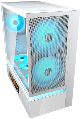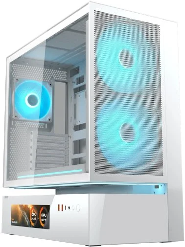 Однією з найяскравіших родзинок CFV235 Mesh Vision є вбудований 9,16-дюймовий IPS TFT LCD-екран із роздільною здатністю 1920 × 462 пікселів та частотою оновлення 60 Гц. Цей дисплей дозволяє в реальному часі відображати параметри системи (температури, навантаження, частоти тощо), а також налаштовувати власні зображення, анімації чи навіть короткі відео через спеціальне ПЗ. Екран додає корпусу не лише функціональності, а й унікального візуального характеру — збірка виглядає як справжній високотехнологічний артоб’єкт.