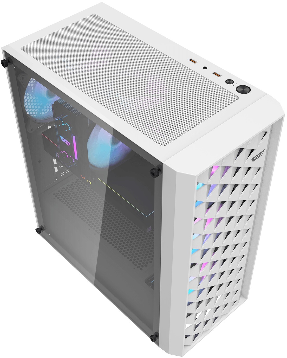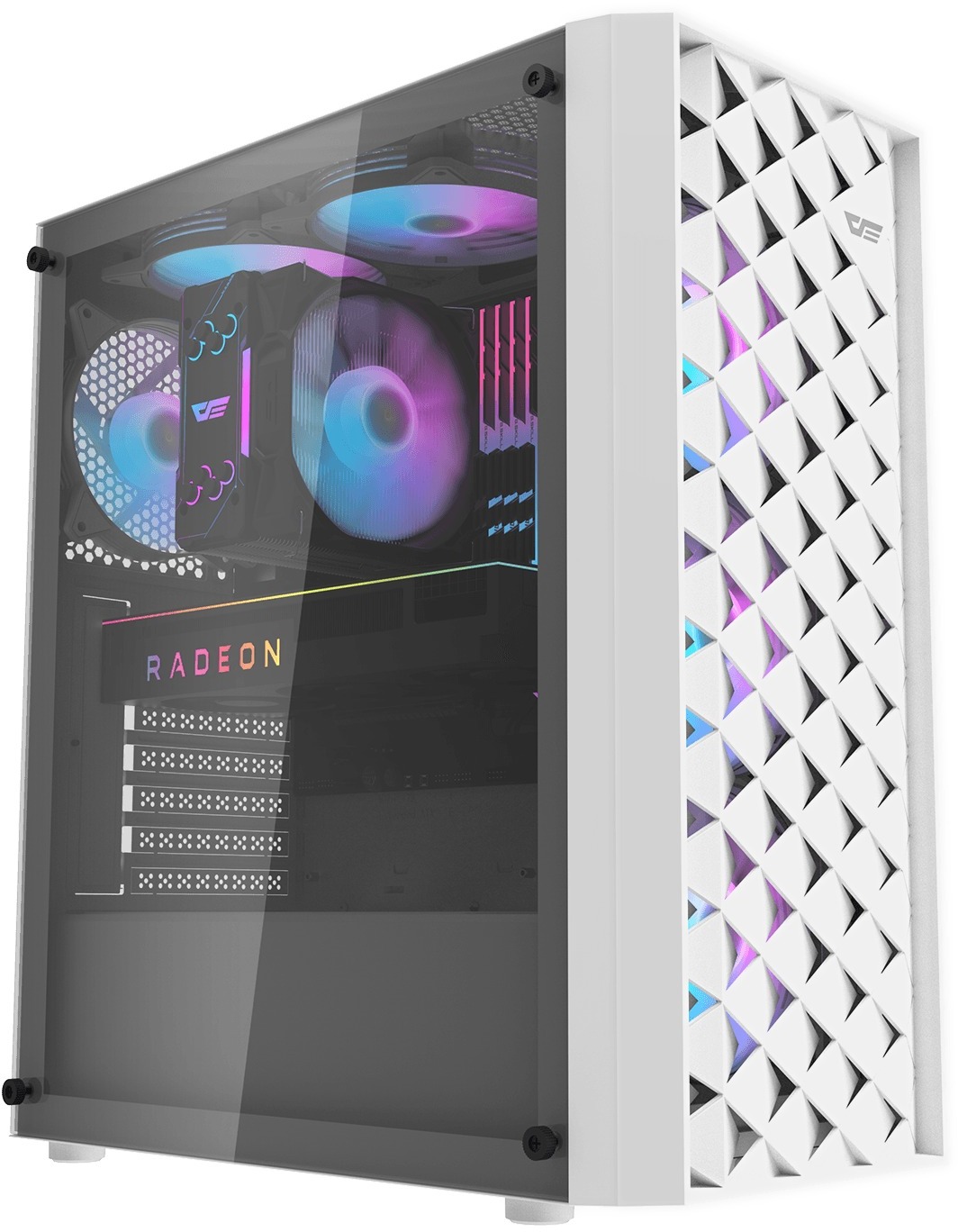 Корпус DARKFLASH DK351 ATX вирізняється стильним дизайном у дусі кіберспорту. Передня панель виконана в оригінальному стилі "драконяча луска", що надає йому агресивного та сучасного вигляду. Бічна панель виготовлена з 4-мм загартованого скла та кріпиться за допомогою гвинтів з накатаними головками, що дозволяє легко демонтувати її для доступу до внутрішніх компонентів.