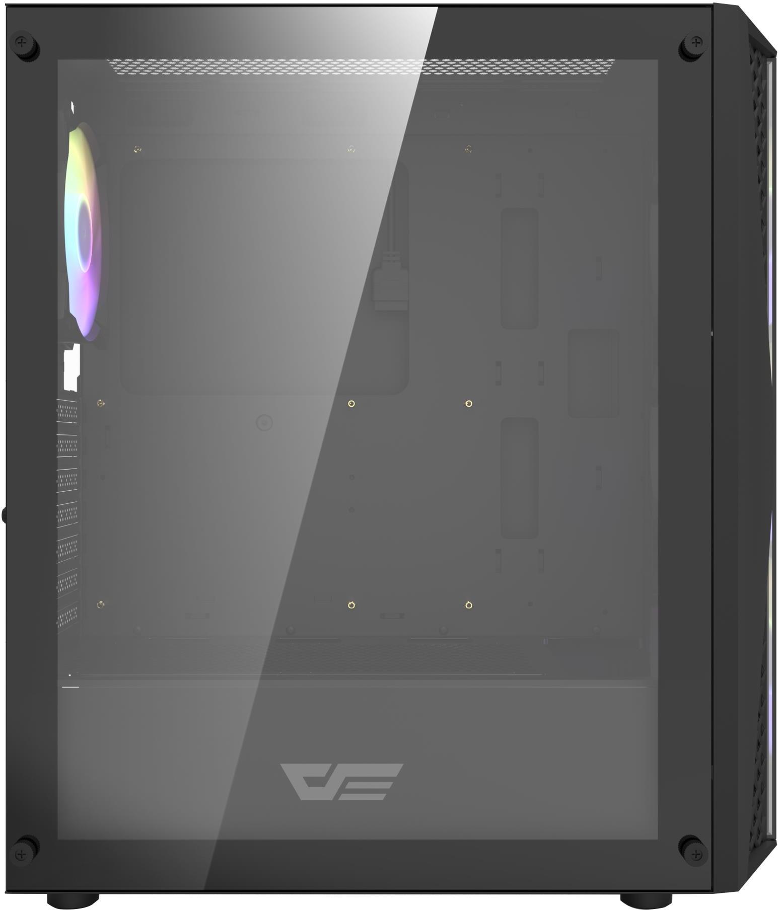 Корпус Dark Flash DK352 Plus поєднує стильний сучасний дизайн із високою функціональністю, створюючи ідеальні умови для ефективної збірки комп’ютера. Його повністю прозора скляна передня панель демонструє внутрішні компоненти, надаючи системі привабливий зовнішній вигляд і дозволяючи милуватися RGB-підсвічуванням та внутрішньою архітектурою ПК.