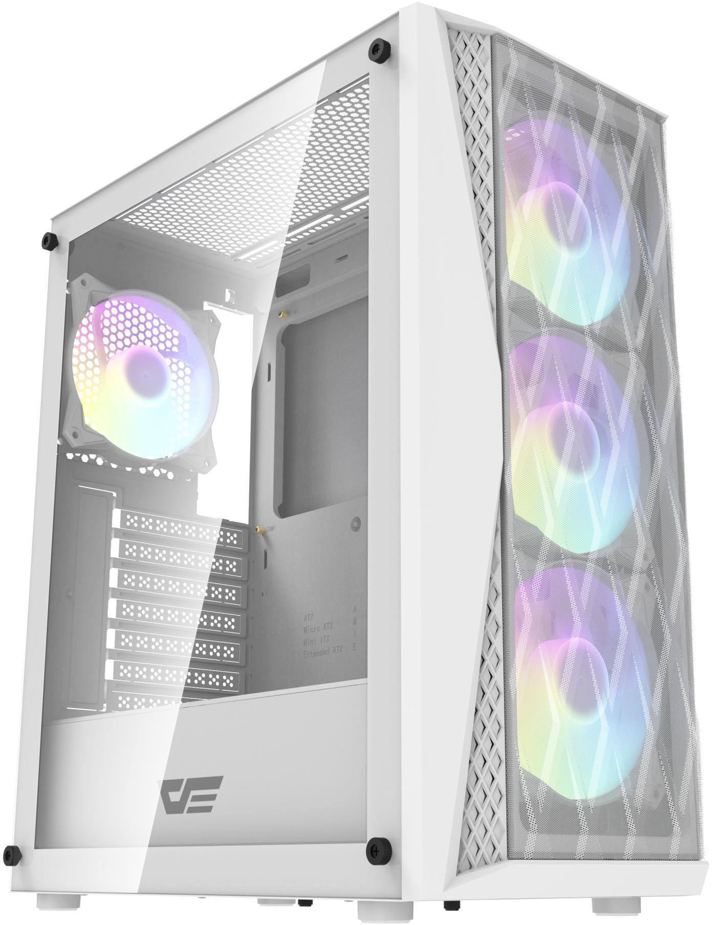 Корпус Dark Flash DK352 поєднує стильний дизайн, функціональність і продуману ергономіку, створюючи ідеальне середовище для потужної збірки ПК. Його бокова панель із загартованого скла дозволяє демонструвати внутрішні компоненти, а також забезпечує надійний захист від пошкоджень і пилу.
