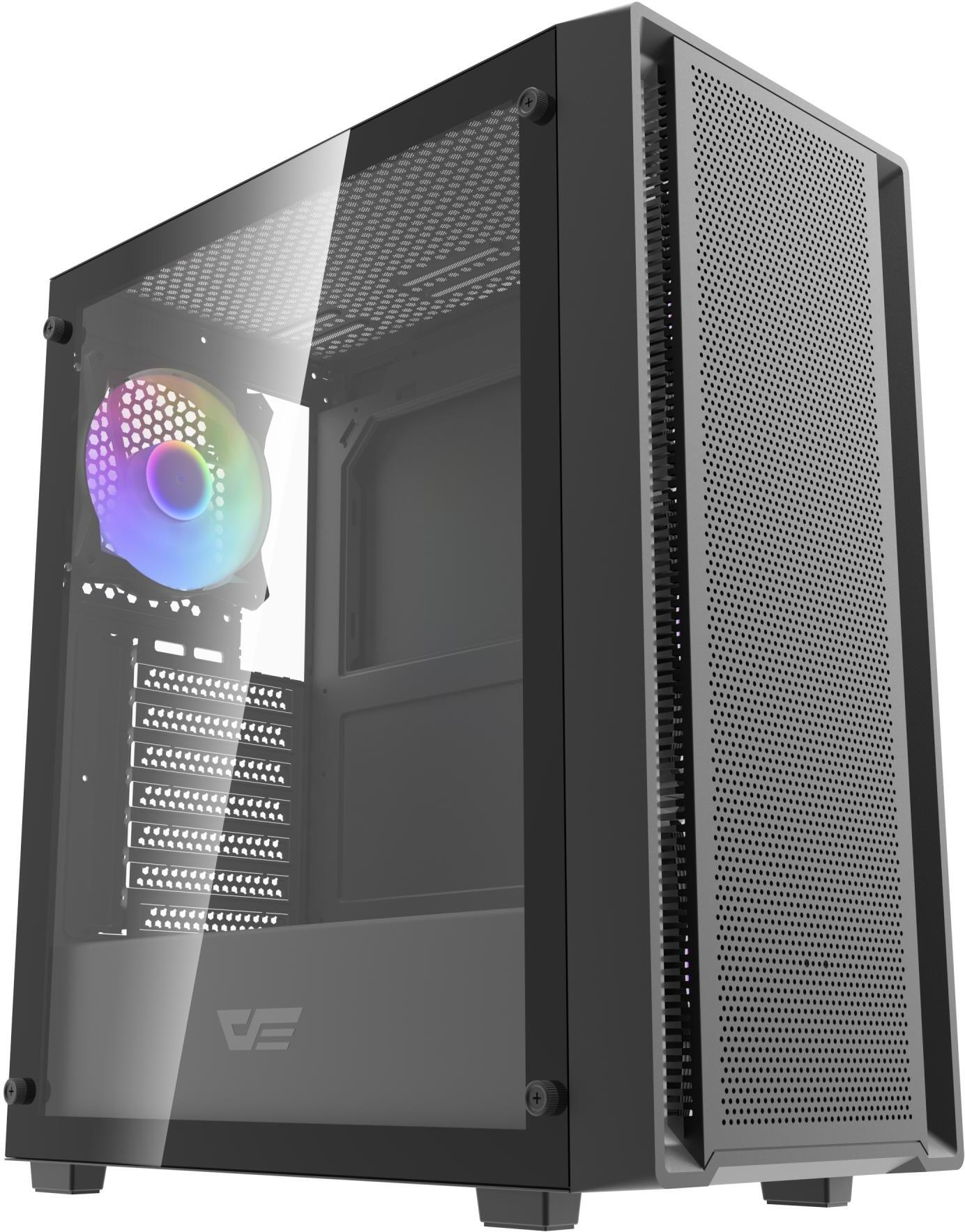Корпус DARKFLASH DK353 є сучасним ATX-рішенням для складання потужних комп'ютерних систем. Він вирізняється сітчастою передньою панеллю, яка забезпечує відмінний повітряний потік, та підтримкою радіатора до 360 мм. Корпус готовий до використання USB 3.0 і має стильний дизайн з елементами з загартованого скла, що дозволяє демонструвати внутрішні компоненти ПК.
